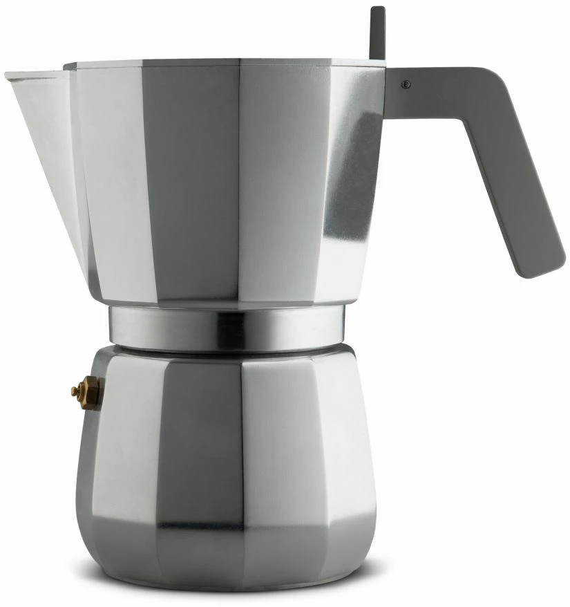 An eleven-sided volume for a coffee maker with a familiar and at the same time innovative form: Chipperfield introduces a series of details that make the Moka design new and even more functional, such as the flat lid on which to place the cups to be heated – allowing optimum enjoyment of the aroma and flavour of the drink – or the position of the knob which allows you to easily raise the lid, using only one hand.