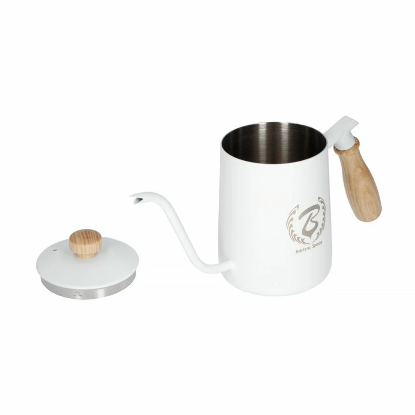 Barista Space 3 in 1 Coffee Kettle – a perfect tool for pour-over brewing methods – precise, functional, and well-designed. It’s biggest advantages are it’s special gooseneck and profiled spout. The wooden handle and knob are elegant and do not get hot.