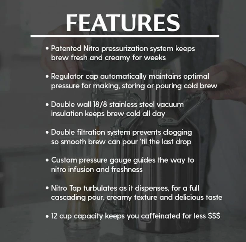 - Patented Nitro pressurization system keeps brew fresh and creamy for weeks