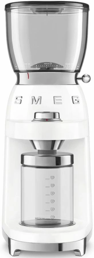 Smeg CGF01 50’s style Coffee Grinder with a die-cast aluminium body and conical stainless steel grinders for a homogeneous grind which preserves all the delicious coffee aromas without altering the flavour.